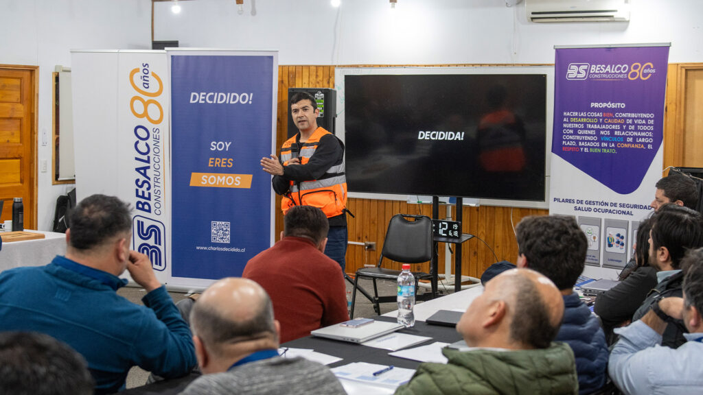 Charla motivacional y de seguridad que impartimos en el Santuario del Río, San José de Maipo, en conmemoración de los 80 años de BESALCO Construcciones.